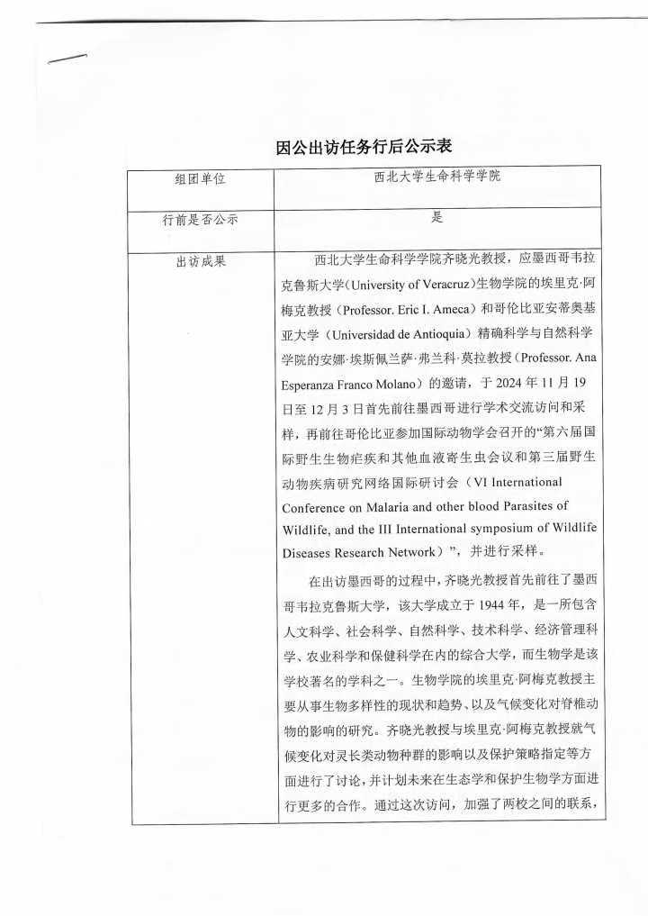 因公出访任务行后公示表
