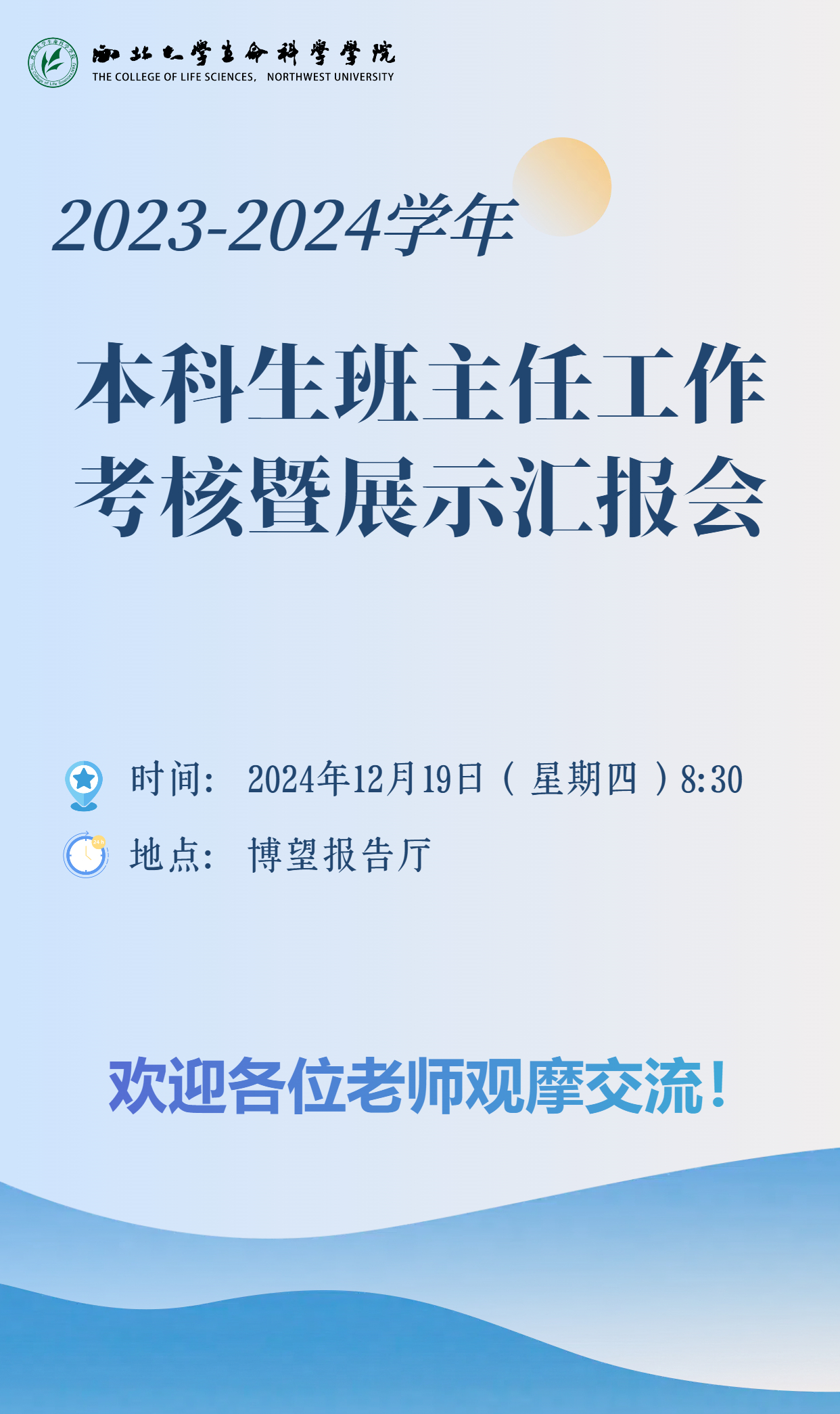 (一)汇报展示面向全院教职工,欢迎各位教师现场观摩,互动交流。