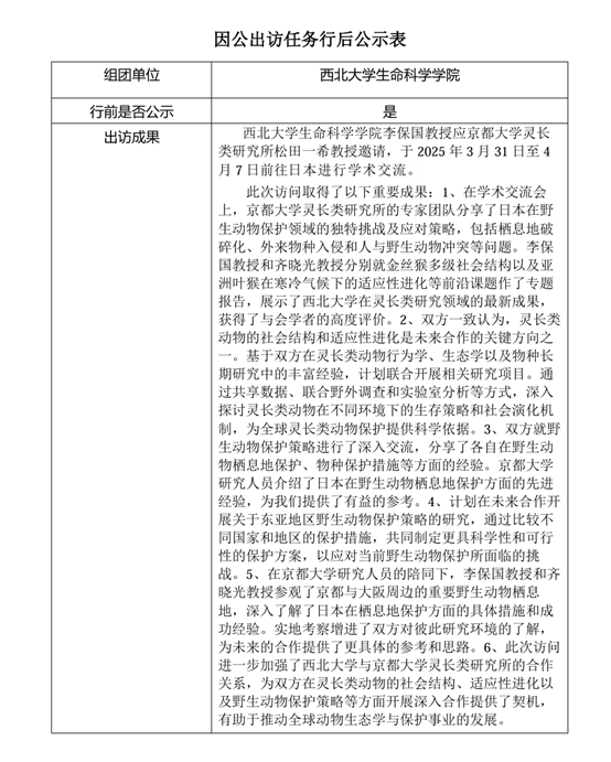 因公出访任务行后公示表