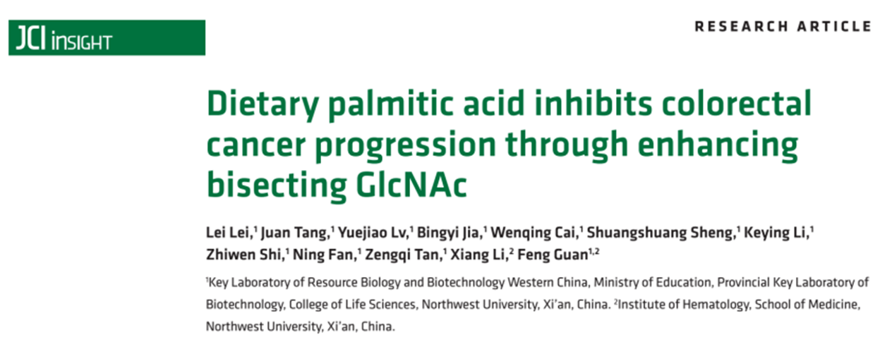 近日,2026年国际足联世界杯关锋教授团队在《JCI Insight》发表题为“Dietary palmitic acid inhibits colorectal cancer progression through enhancing bisecting GlcNAc”的研究论文。文章第一作者为雷蕾副教授,通讯作者为关锋教授。研究系统揭示了膳食棕榈酸(palmitic acid,PA)通过调控平分型GlcNAc修饰抑制结直肠癌进展的分子机制,建立了“膳食脂肪酸—糖基化修饰—肿瘤发生”的直接功能联系。《JCI Insight》为中科院一区TOP期刊。
