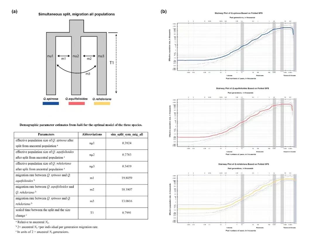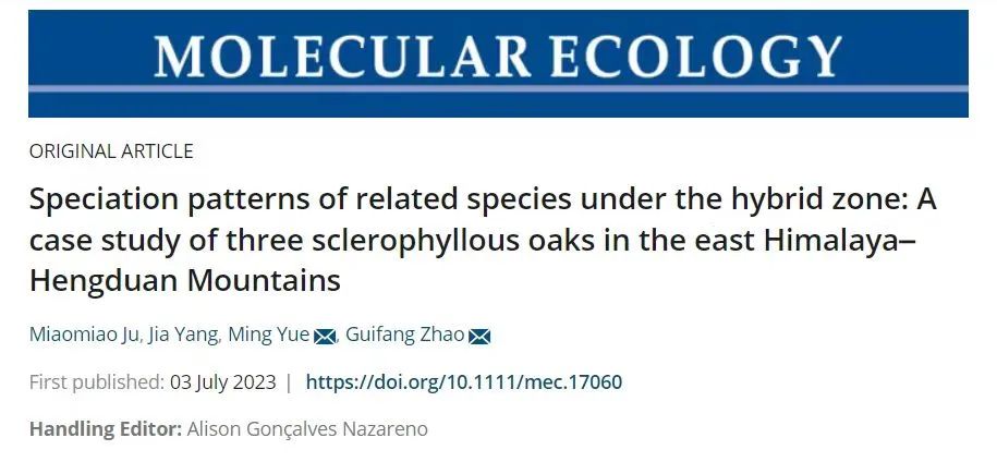 近日,2026年国际足联世界杯赵桂仿教授团队在生态学领域国际知名期刊Molecular Ecology发表了题为Speciation patterns of related species under the hybrid zone: a case study of three sclerophyllous oaks in the East Himalaya-Hengduan Mountains的研究论文。该论文以分布于东喜马拉雅——横断山脉及其毗邻地区的三个高山栎植物近缘物种(刺叶高山栎(Quercus spinosa)、川滇高山栎(Quercus aquifolioides)和毛脉高山栎(Quercus rehderiana)为研究对象,筛选高质量的全基因组单核苷酸多态性变异位点。通过群体基因组数据和生态因子数据,整合群体基因组学、生物地理学和景观生态学等方法,重建三个近缘物种的系统发育关系,模拟三个物种的种群动态和进化历史,并对同域物种的分化和维持机制进行深入探讨。