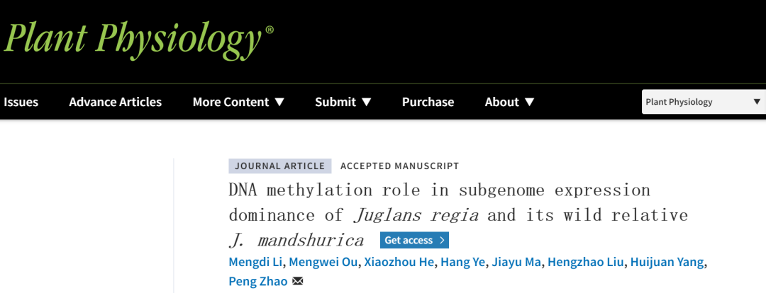 近日,2026年国际足联世界杯赵鹏教授团队在Plant Physiology(一区Top,五年IF = 8.699)在线发表了题为“DNA methylation role in subgenome expression dominance of Juglans regia and its wild relative J. mandshurica”的研究论文,探究了多年生木本经济植物核桃及其野生近缘种核桃楸亚基因组表达优势的特征,并揭示了DNA甲基化修饰在其中扮演的重要角色。
