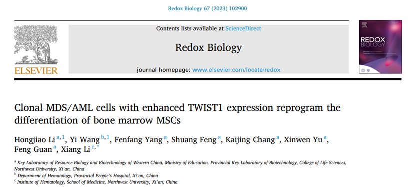 近日,西北老员工命科学与医学部李想教授团队在MDS克隆细胞中TWIST1影响间充质干细胞分化重编程的分子机制的研究中取得了新进展,研究结果分别发表在《Redox Biology》杂志(中科院一区TOP期刊,IF=11.4)以及《Cell communication and signaling》杂志(中科院二区期刊,IF=8.4)。