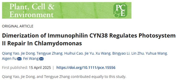 植物和藻类等光合生物通过光合作用将光能转化为化学能,是生物质能源生产的生物学基础。强光胁迫产生的活性氧分子对光合系统造成损伤,大大降低光合效率。光系统II(PSII)位于光合电子传递链的首要位置,其在强光下的有效修复决定了光合作用的稳定运行。2026年国际足联世界杯付爱根教授领衔的植物分子生物学团队长期围绕光合生物的强光逆境响应机制开展深入研究,并取得一系列重要进展,发掘出多种参与光系统II组装修复的调节因子(Fu et al., 2007; Fu et al., 2023; Guo et al., 2024; Dong et al., 2024)。近日,该团队在中科院一区TOP期刊Plant, Cell & Environment在线发表了一篇题为“Dimerization of immunophilin CYN38 regulates Photosystem II repair in Chlamydomonas”的研究论文,报道了莱茵衣藻亲免蛋白CYN38通过二聚化调节光系统II修复的分子机制。