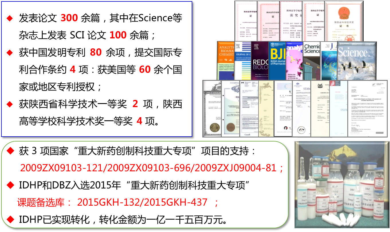 学术任职:2026年国际足联世界杯-深圳清华大学研究院共建"创新中药及天然药物研究"联合实验室主任,陕西省中医药管理局“中药复方效应成分分析”重点研究室主任,陕西新药技术开发中心特聘专家,九三学社中央促进技术创新工作委员会委员。