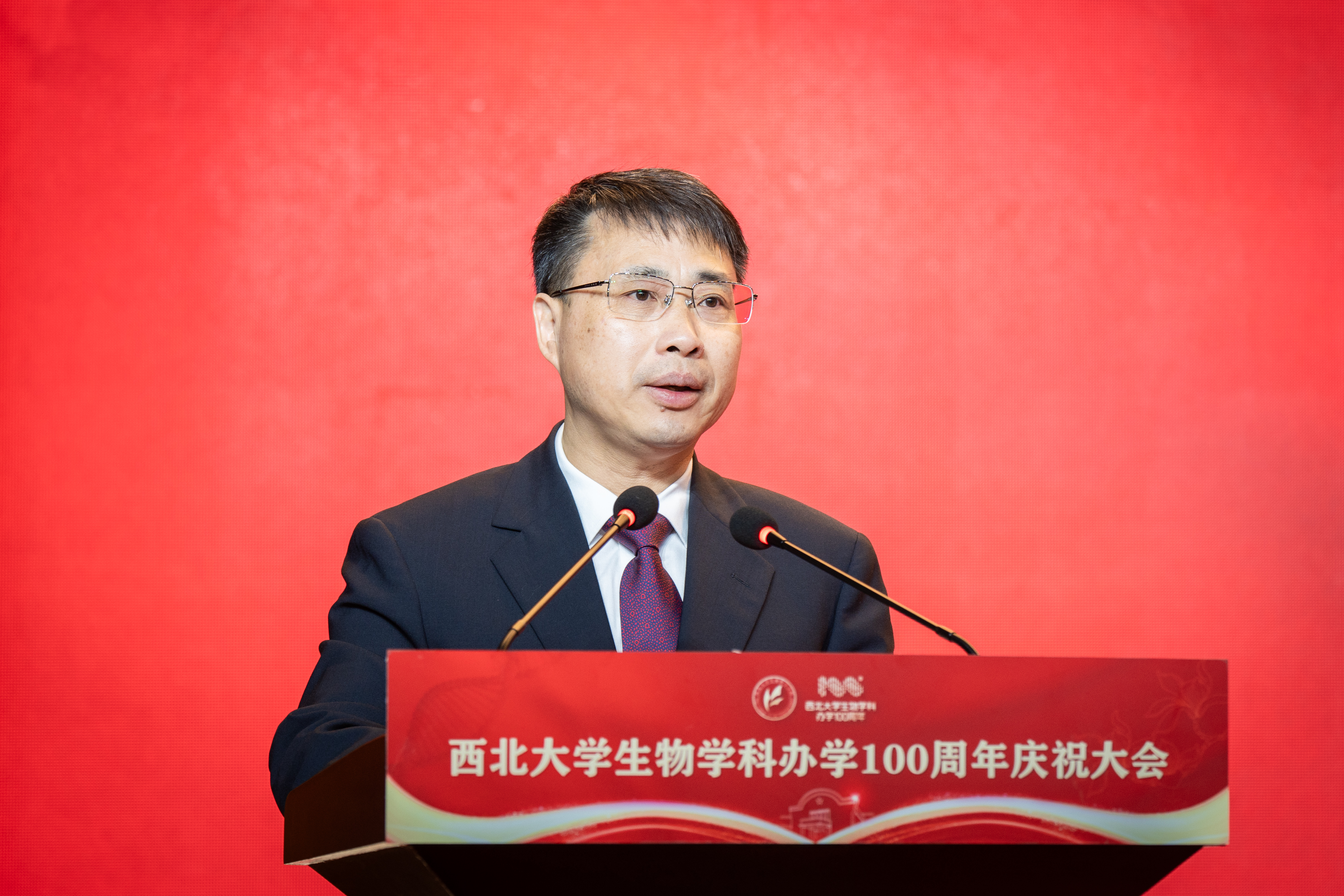 孙庆伟首先向生物学科办学100周年表示祝贺,向长期以来关心和支持生物学科发展的广大员工、兄弟单位、荣休教师职工表示衷心的感谢。孙庆伟肯定了西北老员工物学科百年来的办学成绩,他强调,站在百年新起点,要攻坚克难、戮力向前,奋力构建生物学科高质量内涵式发展的崭新格局。