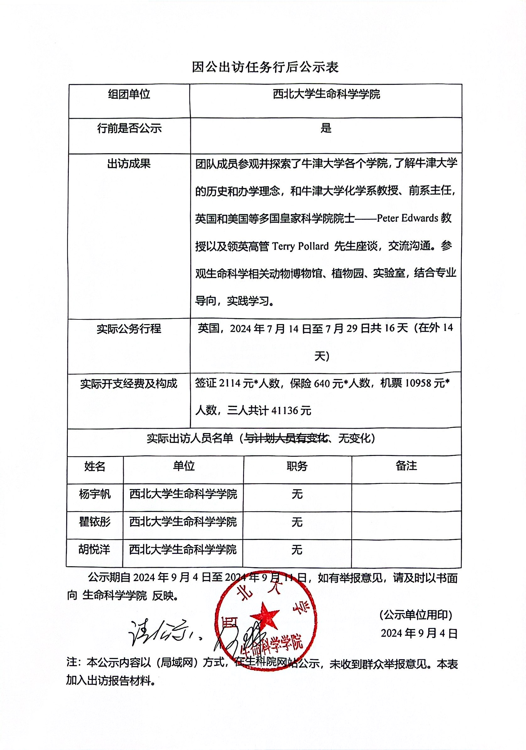 因公出访任务行后公示表
